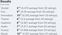The Ludum Dare compo is a game jam with more than 700 participants. Based on previous results, I expected to be in the top 100 for some of the categories, maybe even 15th for one of them. Turns out th...